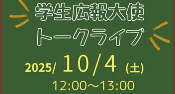 【高校生・受験生応援!】学生広報大使トークライブをオンライン開催します(2025年10月4日(土)12:00~13:00)。