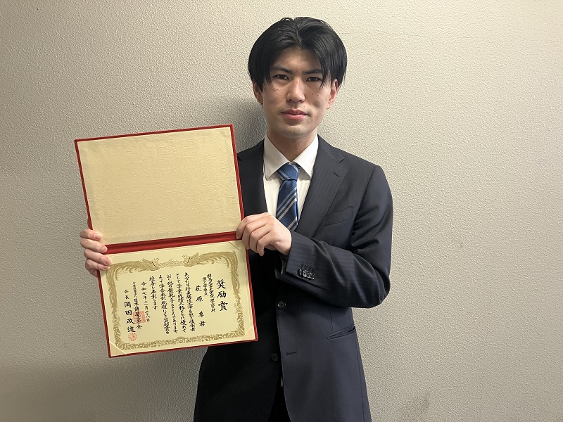 萩原尊さんは、発泡アルミニウムの遠心鋳造に関する研究に従事しており、日本鋳造工学会において講演発表および論文投稿(2025年発行鋳造工学vol.97掲載)等の研究活動を精力的に行っていきました。これらの活動が高く評価され、将来の鋳造工学を担う技術者として認められ奨励賞を授与されました。
