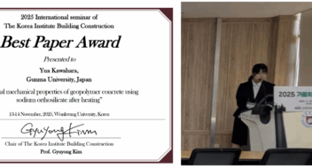 理工学府物質環境類 土木環境プログラム コンクリート工学研究室 M1 河原優有さんが韓国建築施工学会学術発表大会国際セッションにおいてBest Paper Awardを受賞しました。本学会は、2025年11月13日から二 …