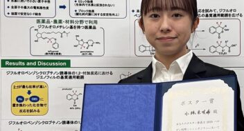 2025年11月28日に愛媛大学城北キャンパスで開催された2025ハロゲン利用ミニシンポジウム(第17回臭素化学懇話会年会 in松山)において、物質・生命理工学教育プログラム(有機合成化学研究室)修士課程2年の小林未咲希 …