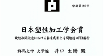 知能機械創製理工学教育プログラム博士前期課程2年の井口太陽さん(館林高校出身)が、一般社団法人日本塑性加工学会、学生奨励賞を受賞しました。受賞テーマは「焼結冷間鍛造における粉末成形と冷間鍛造のFEM解析」です。 本賞は今 …