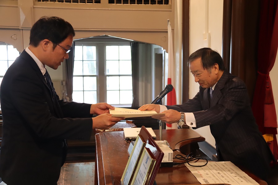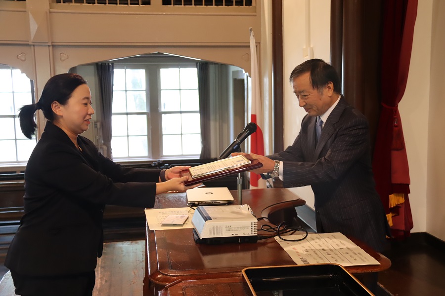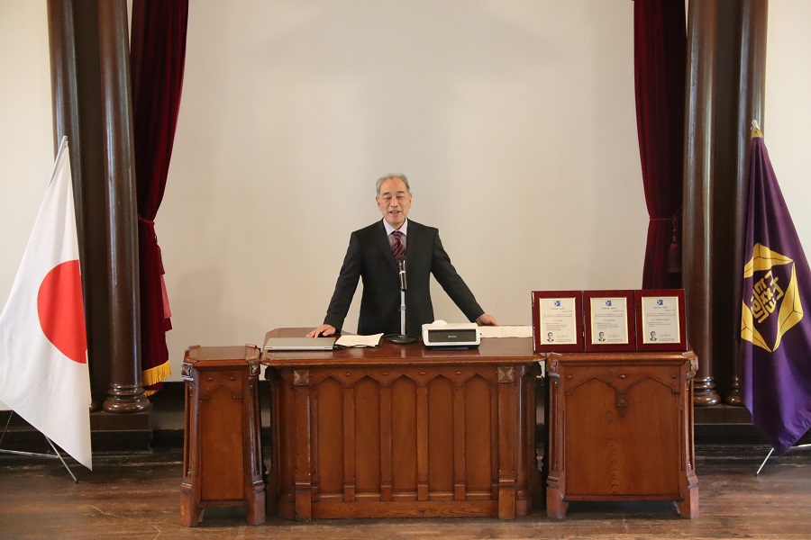 授賞式では、横山科学技術賞委員長である石間経章理工学府長の挨拶と横山科学技術賞選考委員長である中條善樹氏(京都大学名誉教授)による講評があり、受賞者に賞記と記念楯が授与されました。続いて、受賞者による記念講演があり、参加者による質疑応答が行われました。理工学府若手教員の今後の研究に益々の発展が期待される会となりました。