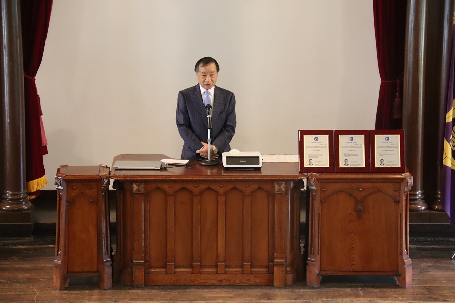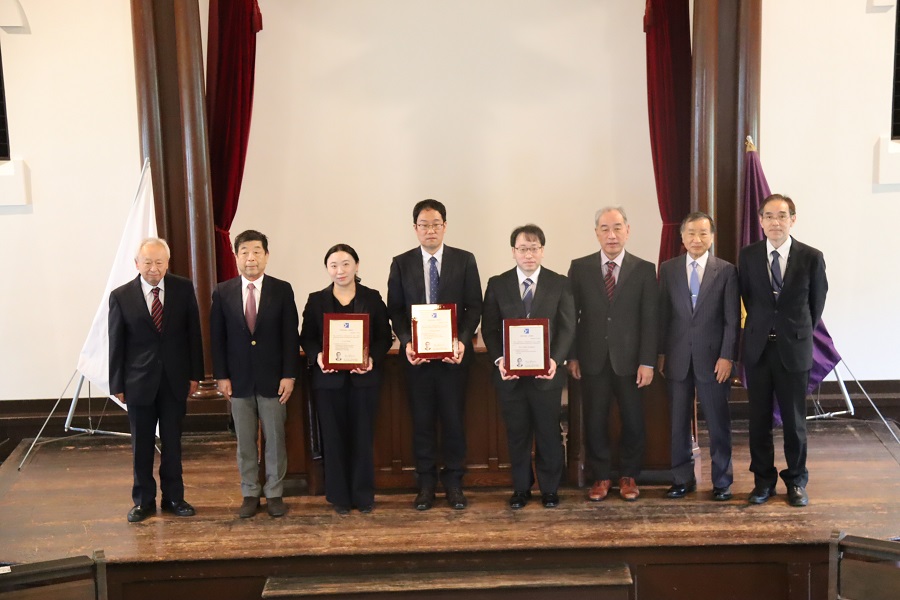 29回目となる今年度は、電子・機械部門の川口貴弘准教授、鈴木宏輔准教授、張慧准教授の3名が受賞し、2025年9月25日(木)に、同窓記念会館において授賞式及び受賞記念講演会が開催されました。